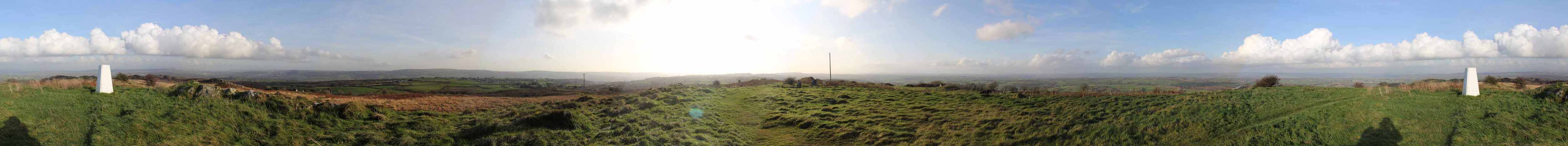 (The easier 2.5 mile walk turns right to the trig and past the standing stone to the road.