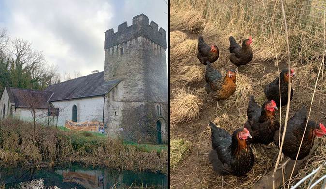 St Illtyd’s Church by the canal and Chickens we’ll see on the way |